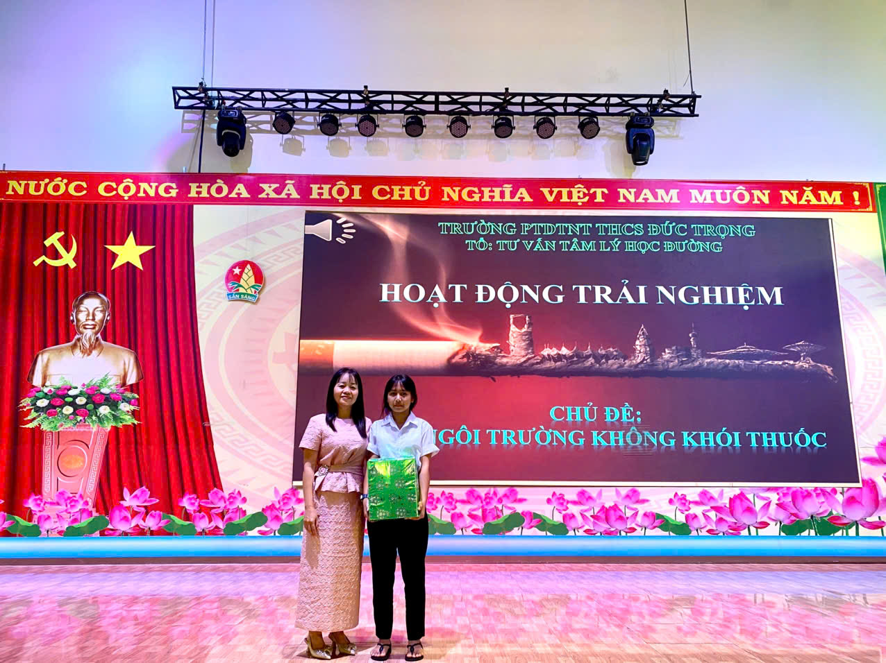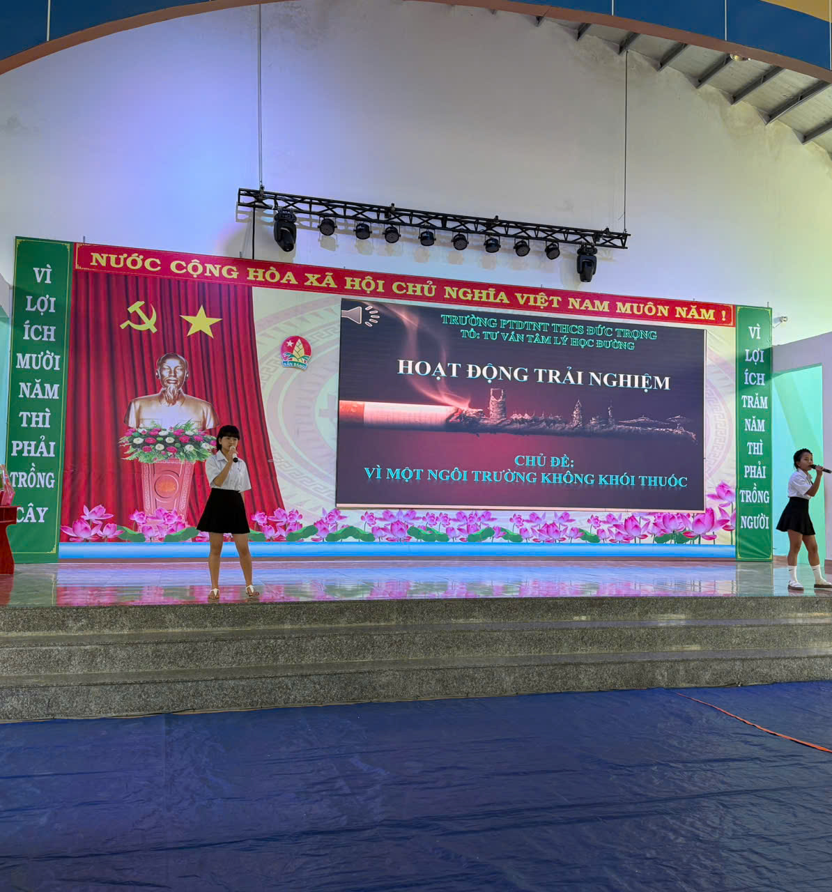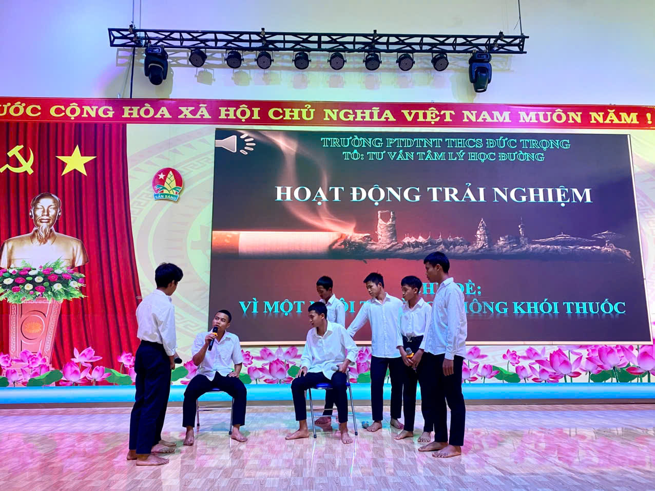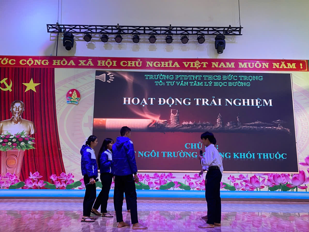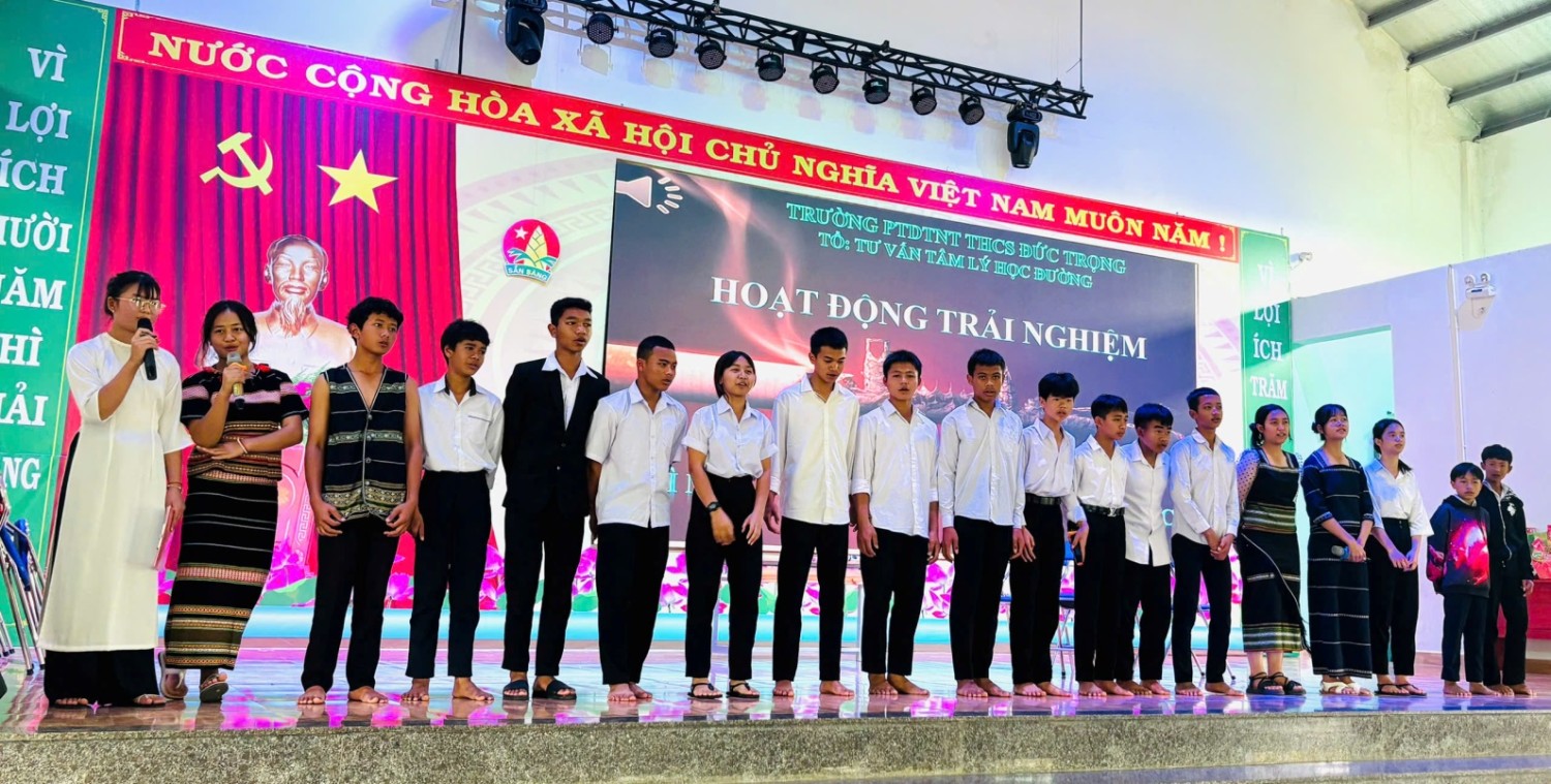 Thực hiện kế hoạch giáo dục kỹ năng sống và chăm sóc sức khỏe học đường, vào cs 14g chiều ngày 31 tháng 01 năm 2026, trường PTDTNT THCS Đức Trọng đã tổ chức buổi hoạt động trải nghiệm ngoại khóa với chủ đề “Vì một ngôi trường không khói thuốc” do Tổ Tư vấn tâm lý học đường thực hiện. Chương trình nhằm nâng cao nhận thức cho học sinh về tác hại của thuốc lá, đồng thời xây dựng môi trường học đường an toàn, văn minh và lành mạnh.
